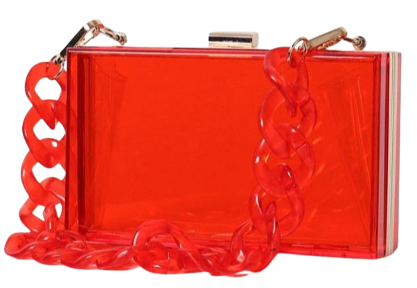 This Clear Colored Clutch Purse is an acrylic transparent box clutch. Being clear allows visibility to your mobile, glasses, lipstick, mirror. Both beautiufl and functional.